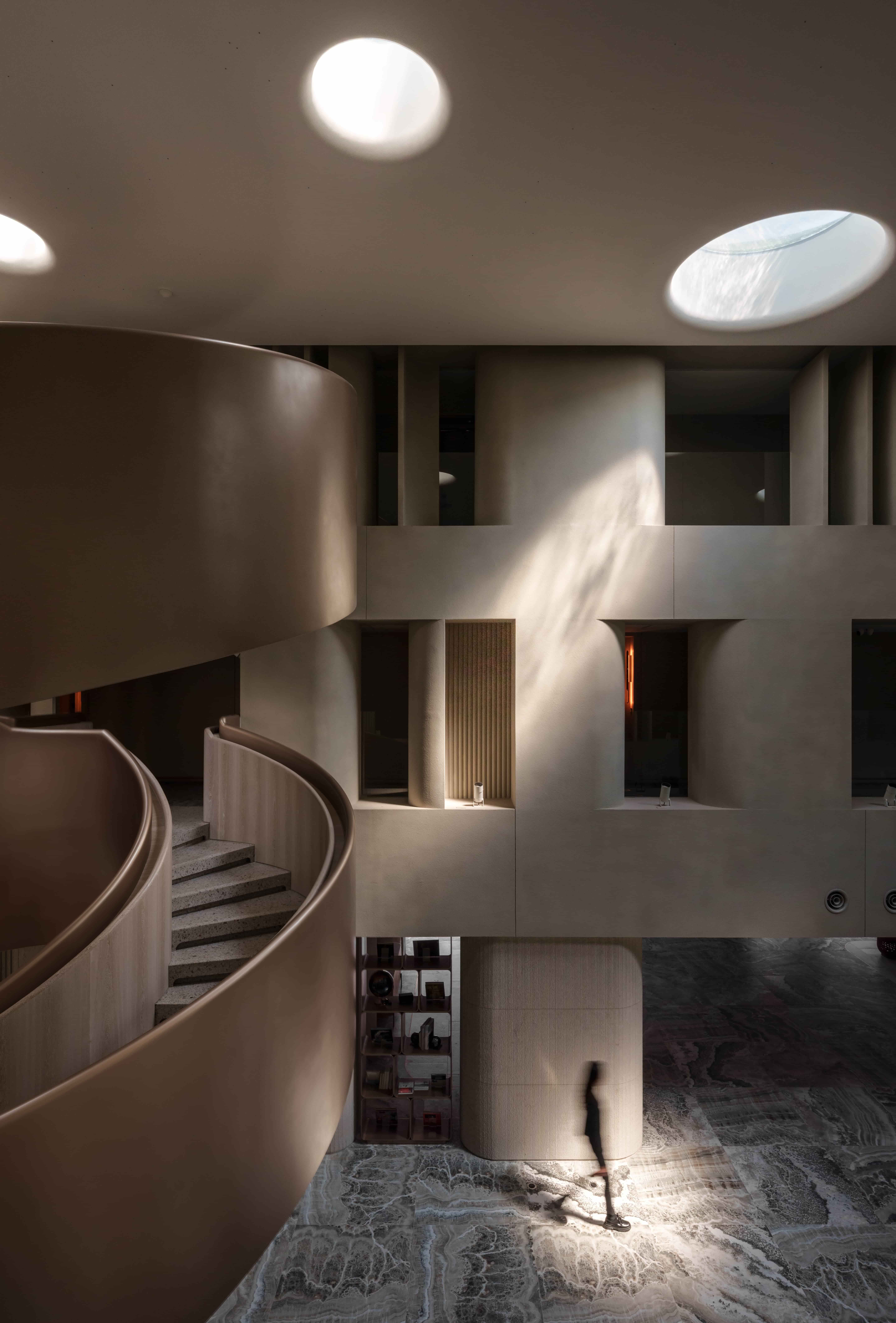 Our lobby features a skylight that allows natural sunlight to cascade indoors through carefully designed architecture, creating a shimmering effect reminiscent of ocean waves. Complementing this is the iconic spiral staircase, resembling the inner curves of a seashell. This design not only showcases the artistic beauty of nature but also symbolizes the infinite cycle of life.