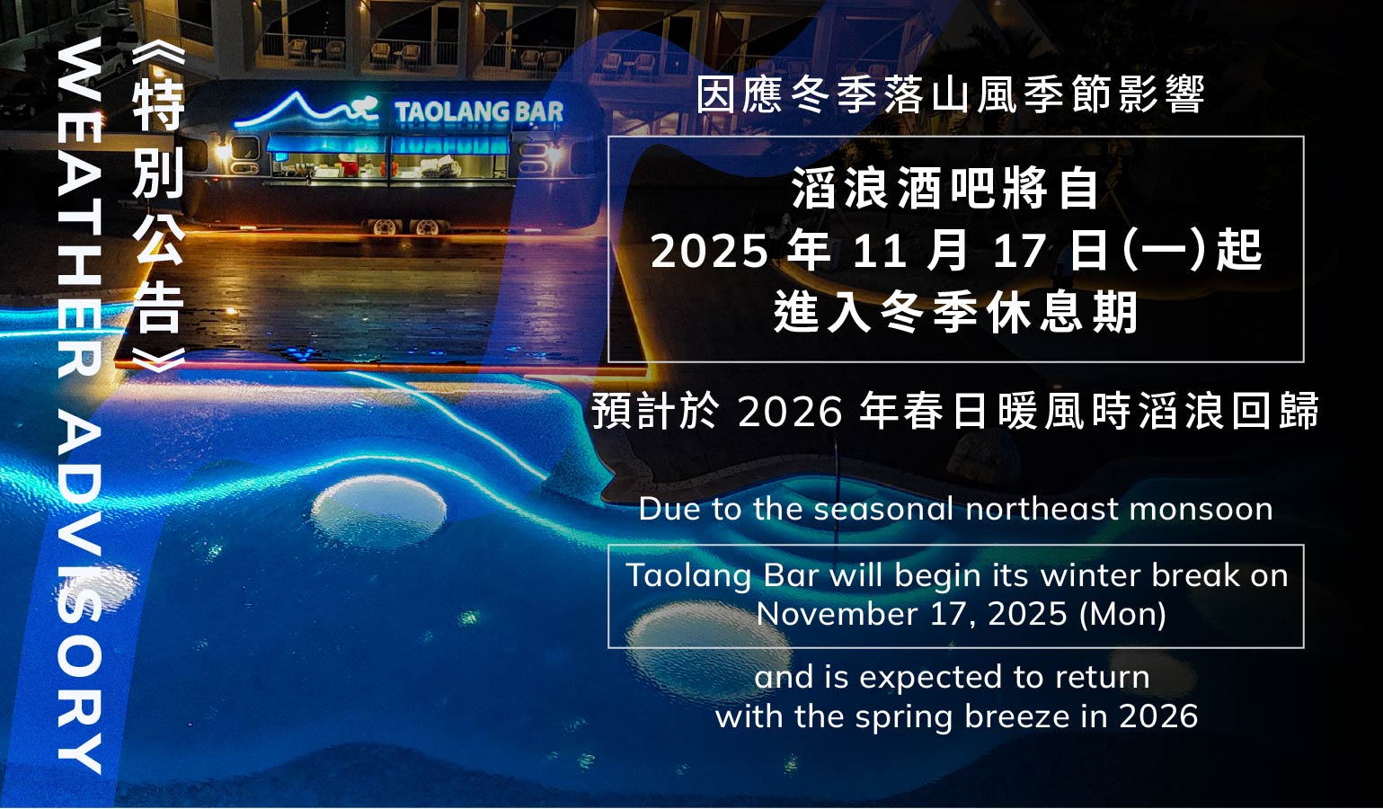 滔浪酒吧將自 2025 年 11 月 17 日(一)起