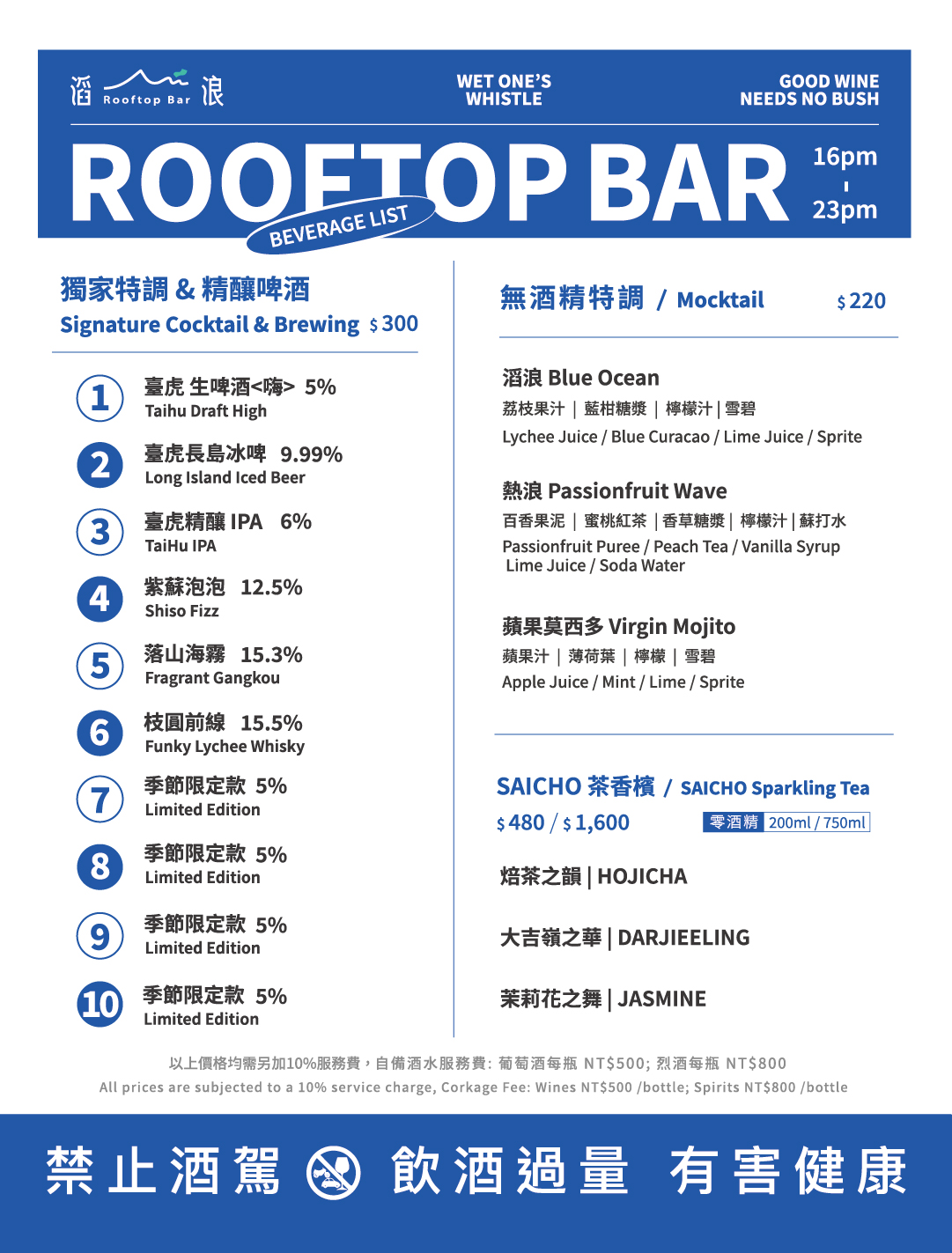 ・消費需另加 10%服務費