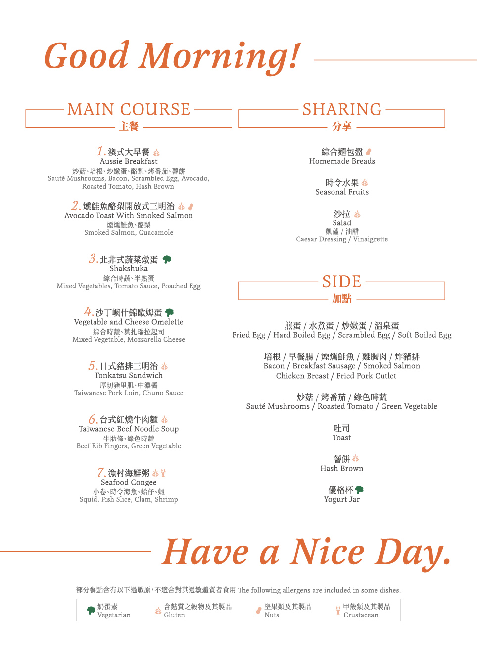 早餐菜單